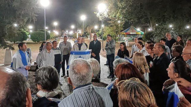 Bajo el lema Con Israel y en Contra del Terrorismo, la dirigencia judía de la capital provincial y familias se concentraron en la sinagoga de calle San Martín, para luego movilizarse por calle Carbó. Al llegar a la plaza Sáenz Peña, las referencias de la comunidad, reflexionaron sobre los sucedido.
