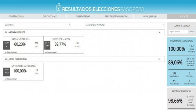 En Aldea Salto, en el departamento Diamante, también se dio una situación llamativa. Allí, la lista "Juntos Aldea Salto Cambia" obtuvo 13 votos, de una lista integrada por 12 personas. La nómina la encabezó Rosa Marrón, acompañada por otros cinco vocales titulares y seis suplentes. Las otras propuestas sacaron más de cien votos.