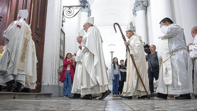 Acompañado. Monseñor Juan Alberto Puiggari junto a monseñor Eduardo Martin, arzobispo de Rosario; monseñor Sergio Fenoi, arzobispo de Santa Fe; monseñor Luis Collazuol, obispo de Concordia; Héctor Zordán, obispo de Gualeguaychú; Pedro Torres, obispo de Rafaela, monseñor Gustavo Help, obispo emérito de Venado Tuerto.