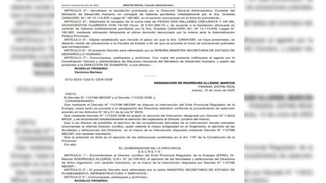 El decreto, fechado el 12 de junio y publicado en el Boletín Oficial de la Provincia de Entre Ríos el pasado 8 de julio, firmado por el gobernador Rogelio Frigerio y refrendado por el ministro de Planeamiento, Infraestructura y Servicios, Abel Rubén Darío Schneider, encomienda a Rodríguez Allende, en su carácter de Director Jurídico del organismo y funcionario de mayor antigüedad, el ejercicio de las facultades y atribuciones del Directorio del EPRE.