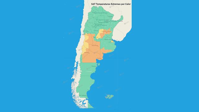 Durante esta jornada, la casi totalidad de Río Negro y el este de Neuquén, en las localidades de Confluencia, este de Añelo, este de Pehuenches y Picún Leufú permanecen bajo alerta meteorológica naranja por temperaturas con "efecto moderado a alto en la salud".
