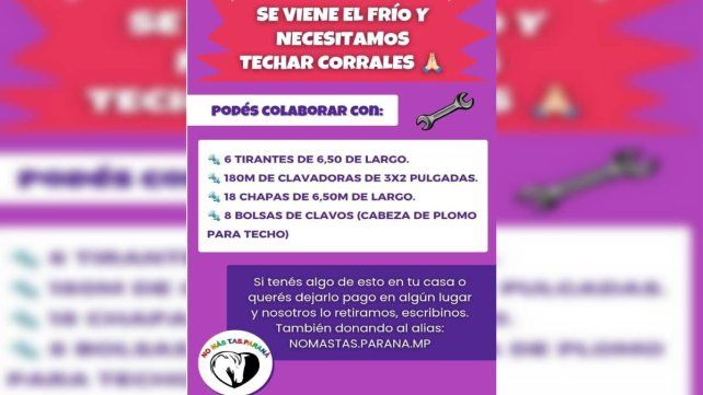 La ONG necesita ayuda para brindar alimento a los animales y también para techar corrales para el invierno