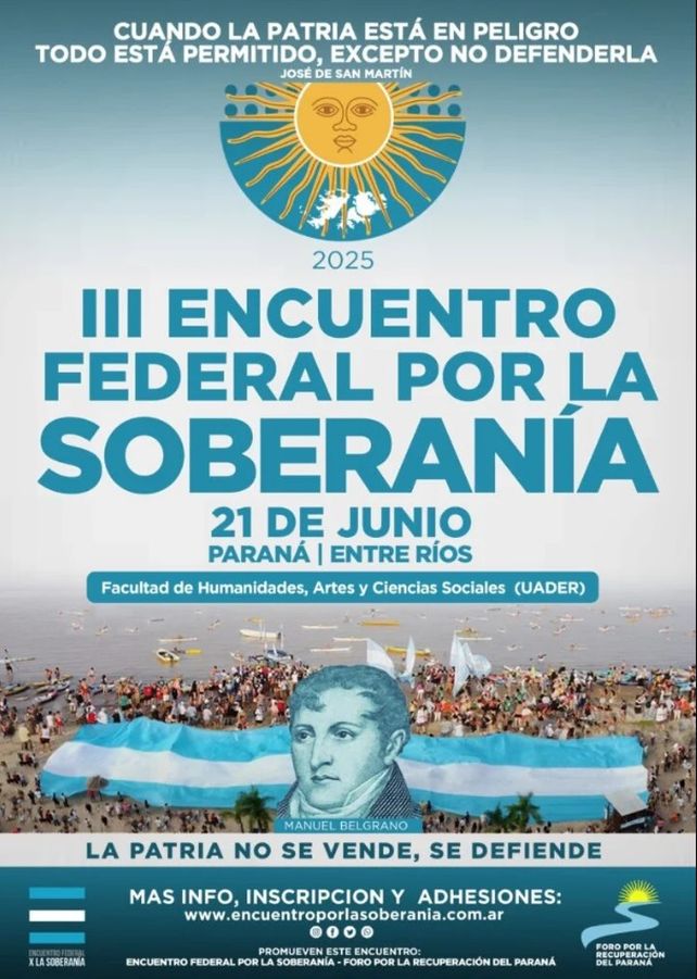 El 21 de junio tendrá lugar en Paraná el tercer Encuentro Federal por la Soberanía organizado por la Facultad de Humanidades de Uader