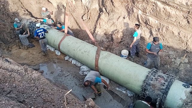 A lo largo de más de 20 horas de trabajo ininterrumpido, se arregló en dos tramos la cañería de impulsión de 900 milímetros, que traslada el suministro desde la planta potabilizadora hacia los centros de distribución Parque del Lago y Lola Mora.