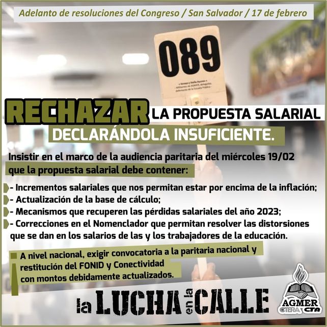 Tras el Congreso realizado en San Salvador, Agmer decidió rechazar la propuesta salarial presentada por el gobierno entrerriano dentro de la paritaria docente.