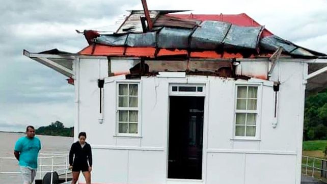 En Paraná Campaña causó graves destrozos en la localidad de Hernandarias donde el viento voló el techo del emblemático muelle flotante donde funciona un comedor y provocó la caída de árboles y postes de cableado.