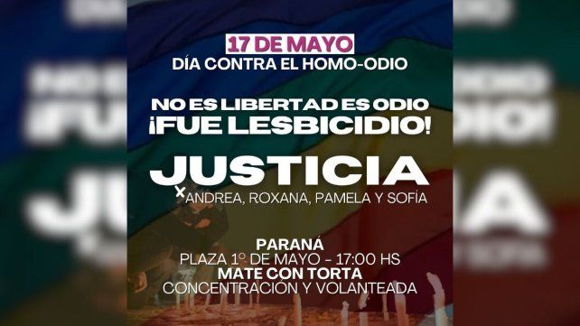 Este viernes a las 17 se realizará una concentración y volanteada en Paraná para repudiar el crimen de las mujeres lesbianas asesinadas en Barracas