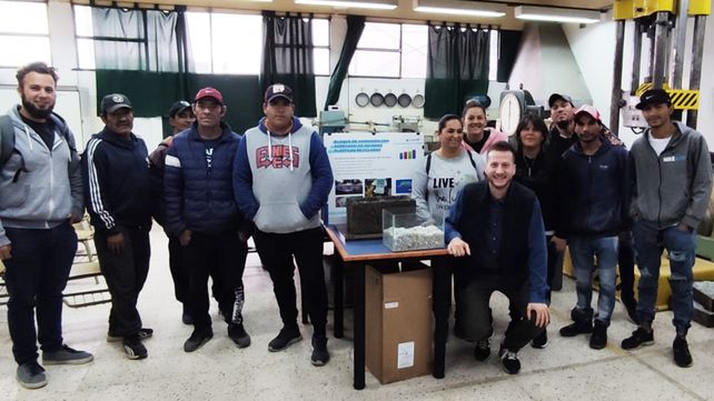 Recicladores de la cooperativa Nueva Vida participan de una capacitación a cargo del equipo de investigación de la UTN. Los bloques podrán utilizarse en cerramientos para viviendas y otras construcciones.