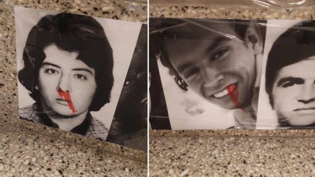 Personas hasta ahora desconocidas mancharon con pintura roja los rostros de algunos de los desaparecidos cuyas fotografías forman parte de la intervención, mientras que otras fotografías fueron destrozadas.