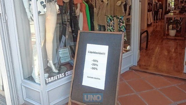 Shirley, de otro negocio del rubro situado a pocos metros, comentó: “Estamos liquidando. Tenemos el 30% de descuento en algunas prendas, en otras cosas el 20% y el 15%. Es en efectivo todo lo que es promo”.