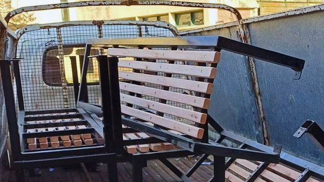 Rosario del Tala: estudiantes fabricaron los primeros bancos para plazas públicas