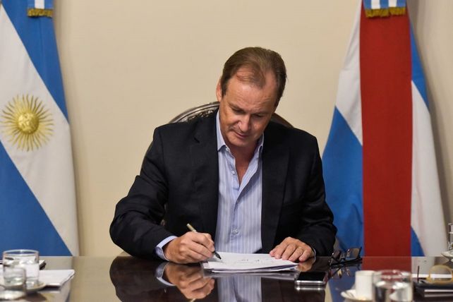 El decreto fue firmado por el gobernador, acompañado por la ministra de Gobierno y Justicia, Rosario Romero, y el ministro de Economía, Hugo Ballay.