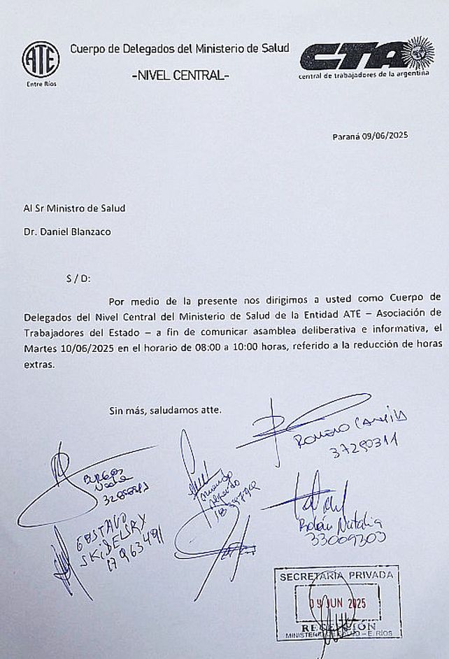 Sobre la reunión con el ministro de Salud, tras asambleas y movilizaciones, el ministro de Salud, Daniel Blanzaco, les dio la confirmación del recorte de las horas extras. En ese marco, y ante la negativa del ministro de tomar otro camino para hacer frente al recorte presupuestario que pide Hacienda se definió intensificar el plan de lucha, en rechazo de estas medidas de ajuste.