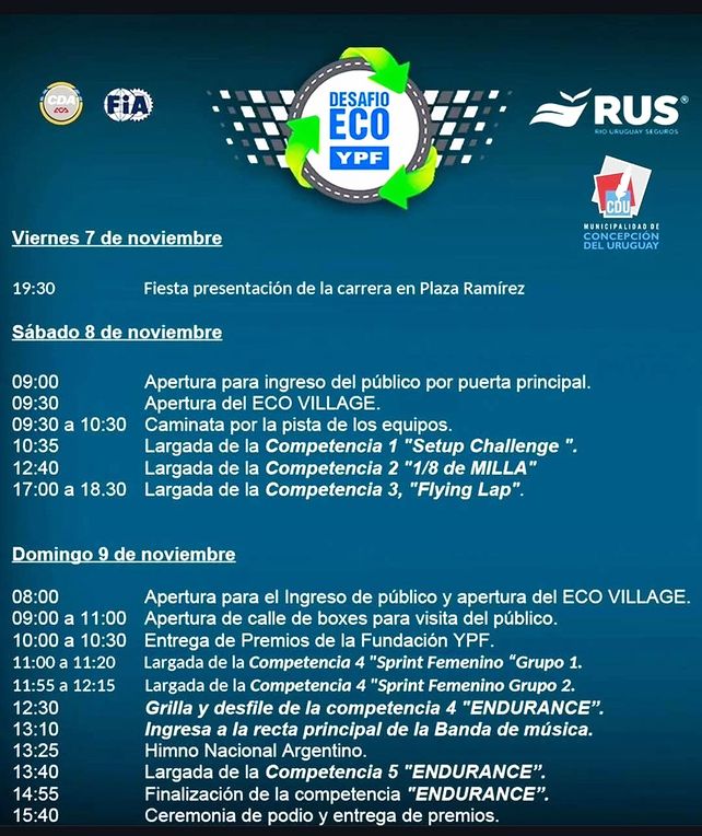 Escuelas técnicas de Paraná, Concordia, Ramírez, Gualeguaychú, Larroque y Villaguay correrán autos eléctricos en el Desafío ECO YPF, en Concepción del Uruguay. Se podrá seguir EN VIVO