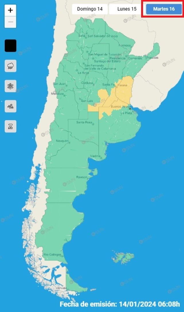 El martes la provincia de Entre Ríos estará nuevamente bajo alerta amarillo por tormentas según el pronóstico extendido del SMN