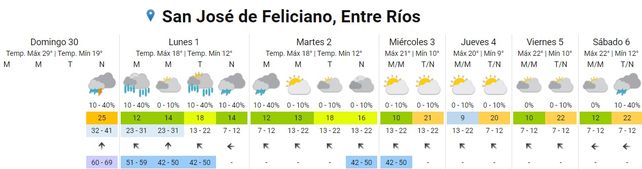 El martes las temperaturas promedio marcarán 12, la mínima, y los 18 grados centígrados, la máxima. El cielo permanecerá parcialmente nublado durante toda la jornada y los vientos soplarán del sudeste en el orden de los 42 y 50 km/h.