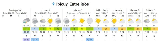 En tanto, el viernes, las temperaturas promedio se ubicarán entre los 10 grados, de mínima, y 25, de máxima. El cielo estará mayormente nublado durante toda la jornada y los vientos soplarán del sudeste.