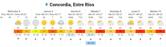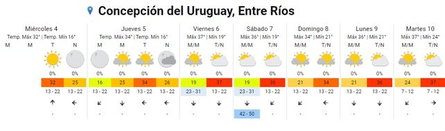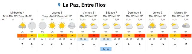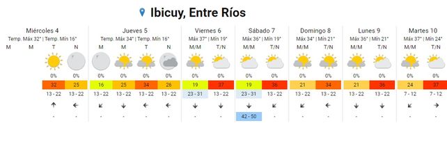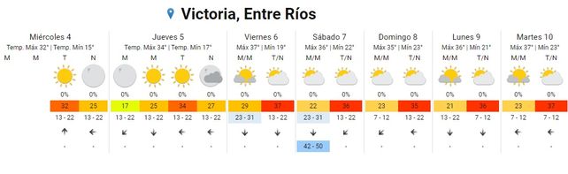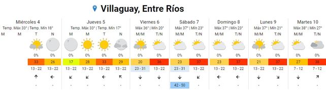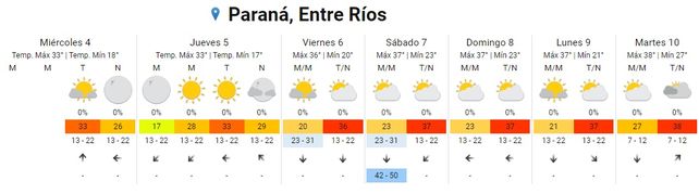 En tanto el domingo, las temperaturas se ubicarán entre los 23 los 37 grados. El cielo permanecerá parcialmente nublado para que toda la jornada y vientos soplarán del este.