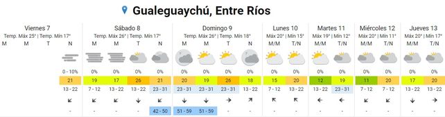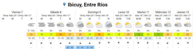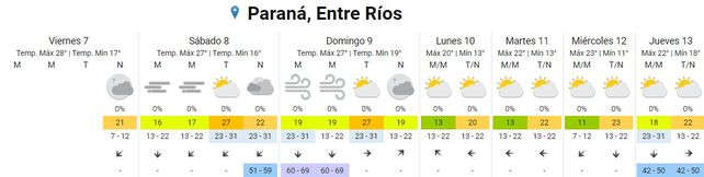 Para el jueves se esperan temperaturas entre 18 y 22 grados con cielo parcialmente nublado durante toda la jornada y vientos del norte rotando al oeste en el orden de los 42 a 50 kilómetros la hora.