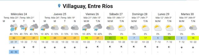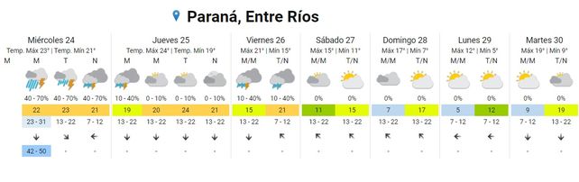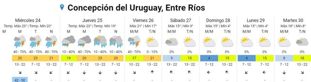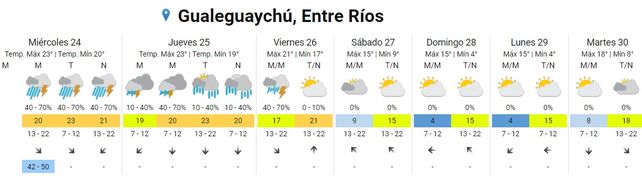 El Servicio Meteorológico Nacional (SMN emitió un alerta por tormentas fuertes, intensas, ráfagas y ocasional caída de granizo para Colón, Concepción del Uruguay, Diamante, Gualeguaychú, Islas del Ibicuy, Nogoyá, Paraná, San Salvador, Tala, Villaguay.
