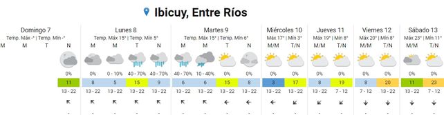 Para el jueves las temperaturas experimentarán leve aumento con valores promedio de 7 grados, la mínima, y 20 grados, la máxima. El cielo permanecerá parcialmente nublado durante toda la jornada y los vientos soplarán del noreste, lo que ocasionará un aumento leve de la temperatura que se podrá apreciar el viernes con una mínima de 10 grados y una máxima de 21. El cielo estará parcialmente nublado durante toda la jornada y la dirección predominante del viento será del Norte.
