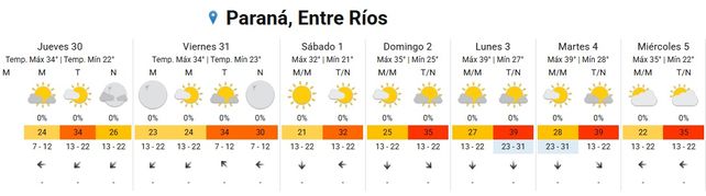 Para el jueves las temperaturas marcarán 22 grados de mínima y 34 grados de máxima, según el pronóstico del Servicio Meteorológico Nacional (SMN)