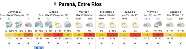 Persiste el alerta naranja por tormentas sobre la región. La semana que inicia tendrá temperaturas de hasta 34 grados promedio y tiempo inestable, según SMN