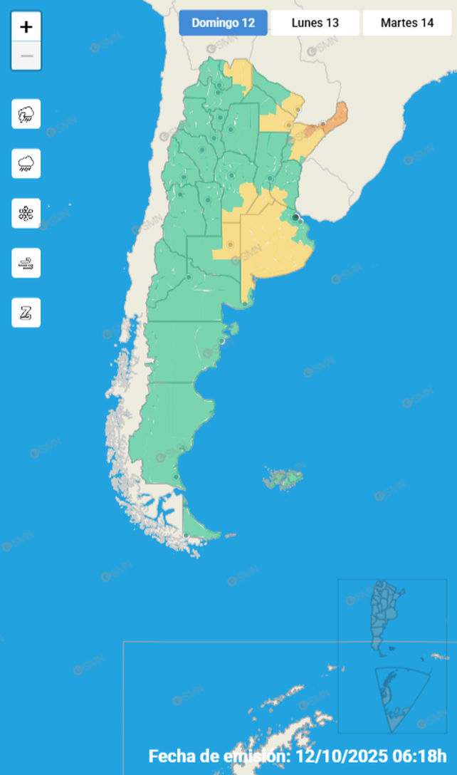 Tras el temporal de lluvia y granizo del sábado, el Servicio Meteorológico Nacional (SMN) pronosticó para este domingo cielo algo nublado durante toda la jornada y temperaturas promedio de entre 11 grados de mínima y 23 grados de máxima, con vientos del sudoeste en el orden de los 42 a 60 kilómetros la hora. Persiste el alerta amarilla por vientos para los departamentos Victoria, Gualeguay e Islas.