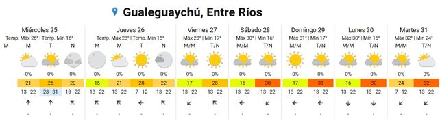 El Servicio Meteorológico Nacional (SMN) informa para el resto de la semana temperaturas promedio de entre 19 y 26 y grados con picos de 33 y cielos nubosos, sin lluvias.