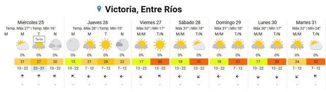 Para el domingo se espera una temperatura mínima de 20 grados y una máxima de 31 con cielo despejado durante la mañana y cielo algo nublado durante la tarde y noche. Los vientos soplarán del este rotando al noreste.