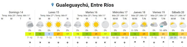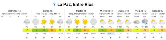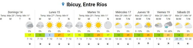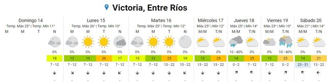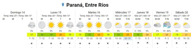 El Servicio Meteorológico Nacional (SMN) pronostica días otoñales para esta semana con temperaturas promedio de entre 14 grados de mínima y los 24 grados centígrados de máxima, y días despejados. Hacia fin de semana pueden precipitar algunas lluvias aisladas.