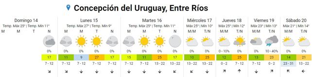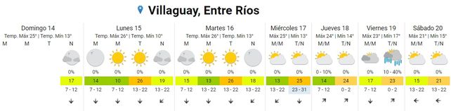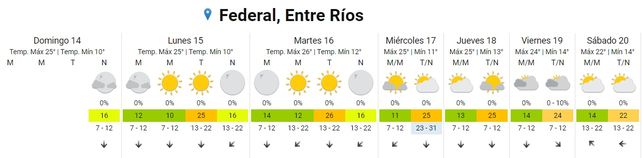 En tanto el sábado, se pronostican temperaturas de entre 15 y 21 grados. El cielo se presentará parcialmente nublado y los vientos predominarán del sector este.