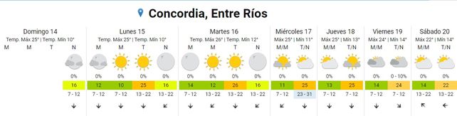 Para el miércoles, las temperaturas promedio se ubicarán entre los 13 y los 25 grados centígrados y el cielo estará parcialmente nublado. Los vientos predominarán del noreste, rotando al norte.