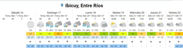 SMN pronostica lluvias para la provincia e Entre Ríos