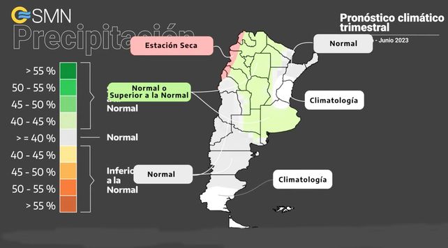 "En el trimestre se espera que las lluvias sean normales o superior a las normales para la época del año sobre provincias de norte del país, Córdoba, oeste de Santa Fe, este de San Luis y Buenos Aires", indicó el meteorólogo José Luis Stella. En tanto señaló que la cantidad de milímetros serán mayores a lo normal en el norte del Litoral, cuyo y centro y norte de la Patagonia.