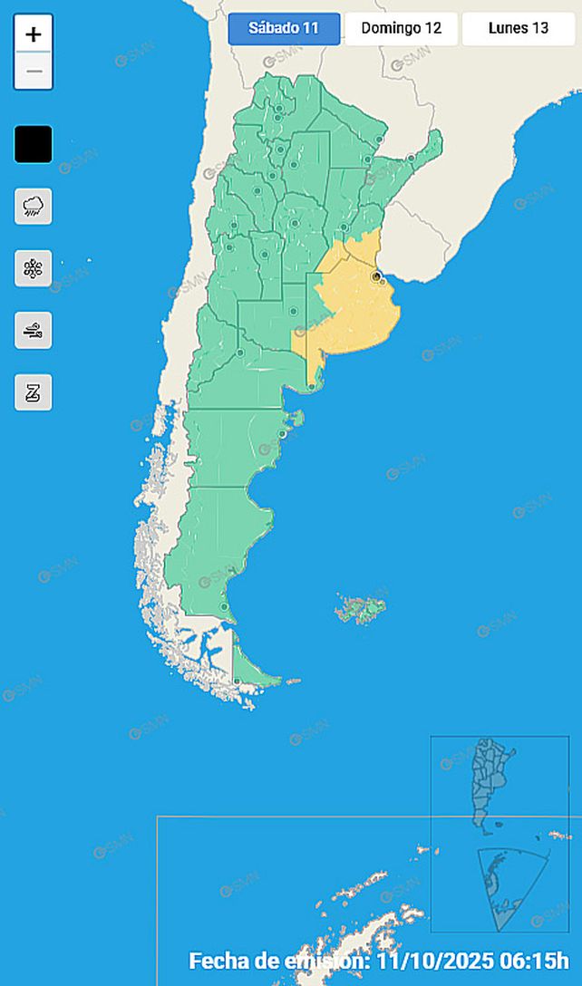 Alerta amarilla para una zona de la provincia