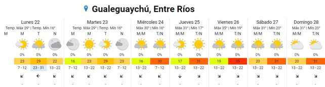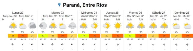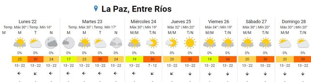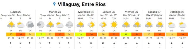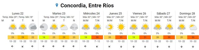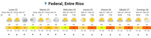 El viernes las temperaturas seguirán en aumento con 19 grados centígrados de mínima promedio y 34 de máxima. El cielo estará algo nublado durante toda la jornada y los vientos soplarán del noreste.