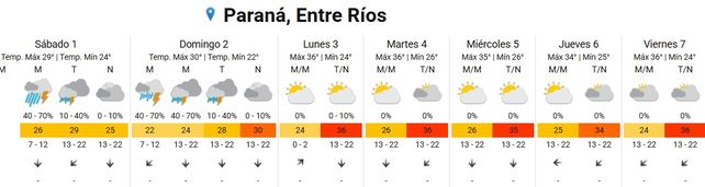 El viernes las temperaturas se ubicarán entre los 24 y los 36 grados, con cielo mayormente nublado durante toda la jornada y vientos del noreste.