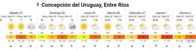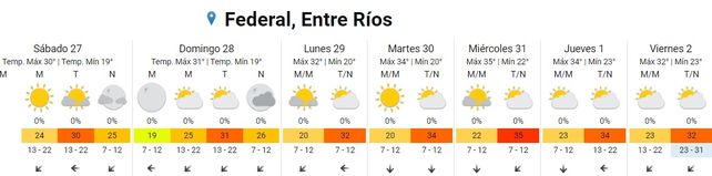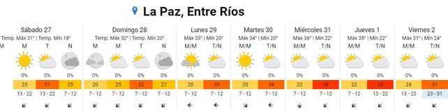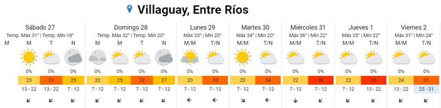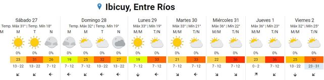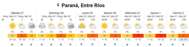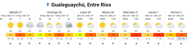 El verano se afirmó en los últimos días, y según lo informado por el Servicio Meteorológico Nacional (SMN), las altas temperaturas se mantendrán con idénticas condiciones. De esta manera, las máximas llegarían en Entre Ríos a los 32°, y en la tapa meteorológica, no se anuncian lluvias.