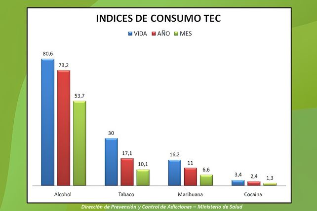 Las instancias se desarrollaron entre agosto y octubre y estuvieron a cargo del equipo técnico de la Dirección de Prevención y Control de Adicciones de la cartera sanitaria, encabezado por Pablo Cymbalista. En esta primera etapa, previo a la realización de charlas informativas, se encuestó a un total de 538 estudiantes de entre 12 y 19 años respecto del consumo.