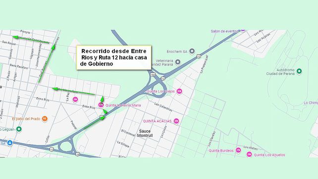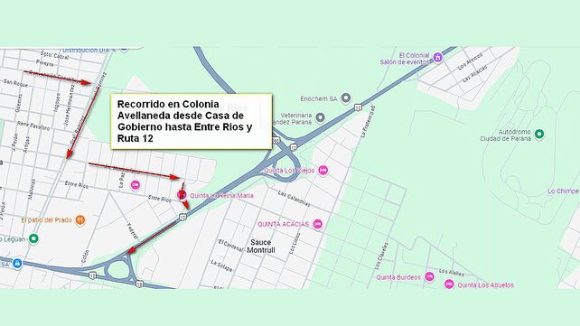 El recorrido en Colonia Avellaneda será desde Casa de Gobierno hasta Entre Ríos y Ruta 12. Y el regreso será desde Entre Ríos y Ruta 12 (Colonia Avellaneda) hacia Casa de Gobierno