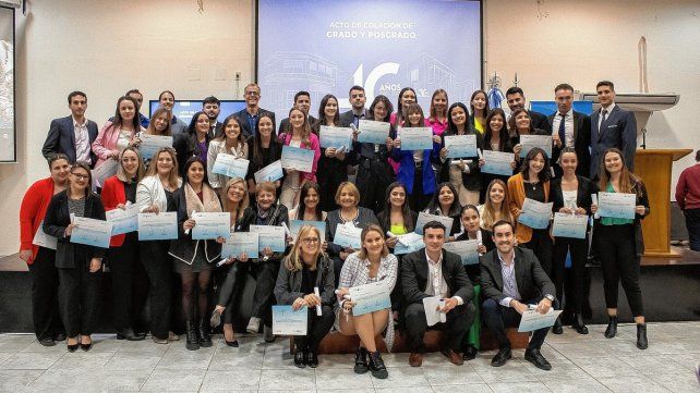 El acto de colación de Grado y Posgrado fue presidido por el decano de la facultad, Mg. Gregorio Etcheverry, el vicedecano, Mg. Ricardo Azario, y la secretaria Académica, Mg. Valeria Belmonte. También estuvieron presentes el equipo de gestión, docentes de la casa, familiares y amigos de las y los más de 130 nuevos profesionales y especialistas del campo de la salud.
