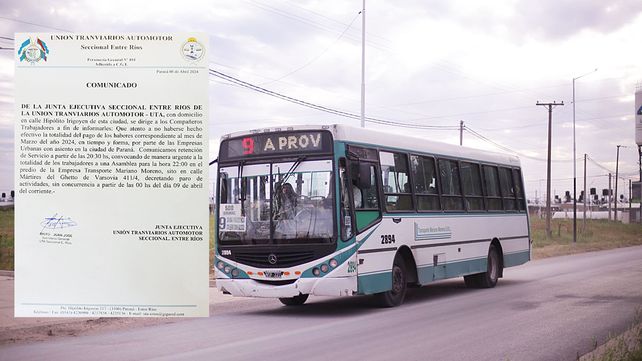 El gremio decretó paro de actividades sin concurrencia a partir de las 0 horas del día 9 de abril, según el comunicado que lleva la firma de Juan José Brito, secretario general de UTA Entre Ríos.