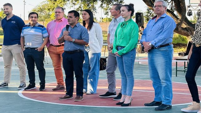 Autoridades de la Secretaría de Deportes del Ministerio de Desarrollo Humano provincial participaron en la inauguración del espacio, que servirá para desarrollar actividades deportivas como básquet y vóley. El playón, ubicado dentro del establecimiento educativo, fue recientemente remodelado.