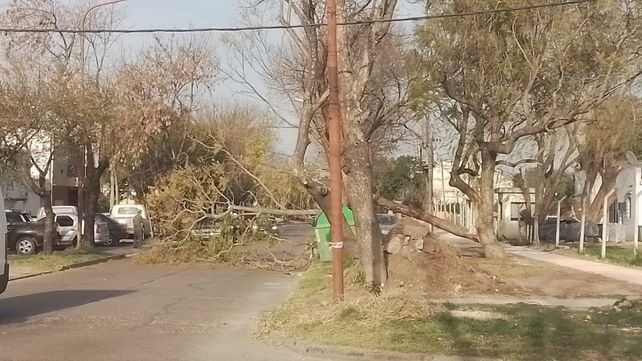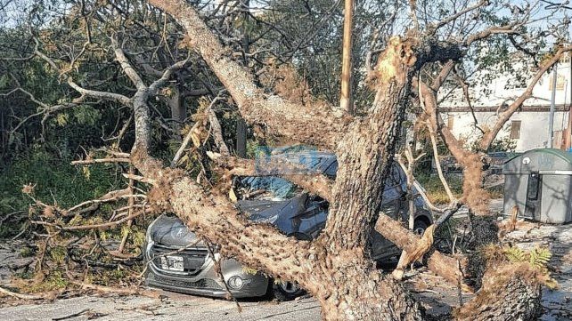 El último incidente registrado en la tarde se dio en calle Nogoyá al 500. Allí el dueño de un Peugeot 208, que se encontraba trabajando en el Parque Berduc, sufrió importantes daños el rodado con la caída de un árbol de importantes dimensiones.