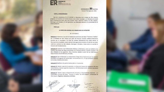 La localidad de Villa Urquiza volverá a contar con enfermeros y médicos de guardia los fines de semana y feriados; y el servicio de ambulancia. Así lo confirmó el ministerio de Salud tras un encuentro en el que se firmó un convenio mediante el cual el municipio se hará cargo del pago de sueldos. La respuesta llegó tras el reclamo de los vecinos que estuvieron un mes sin personal y móvil de traslado. En ese tiempo ocurrieron dos accidentes graves que dejaron evidencias la falta de la atención.
