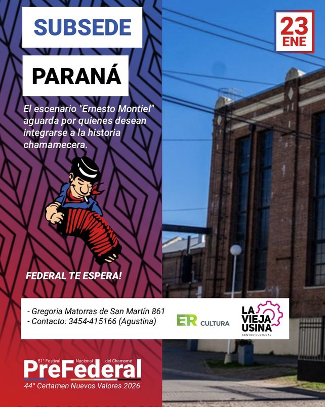 El viernes 23 de enero, la capital entrerriana se convertirá en el epicentro de la cultura litoraleña al recibir una de las instancias más esperadas del año: el Certamen Nuevos Valores del Festival Nacional del Chamamé, popularmente conocido como Pre Federal. La cita tendrá lugar en el Centro Cultural La Vieja Usina, donde jóvenes exponentes buscarán su lugar en el escenario mayor del chamamé.