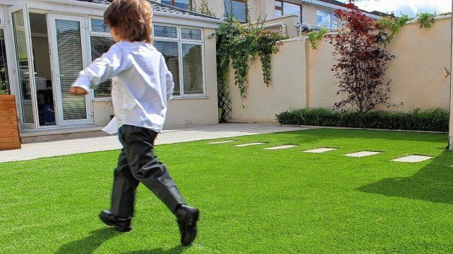 * Ofrezca a sus hijos un área de juegos al aire libre con césped artificial en el patio trasero.