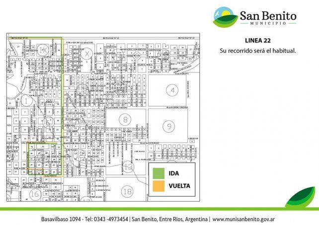 La Línea 22 seguirá con su recorrido habitual, la 20 ingresará a la localidad y se agregará el nuevo servicio que unirá de Colonia Avellaneda, San Benito, Paraná y Oro Verde.
