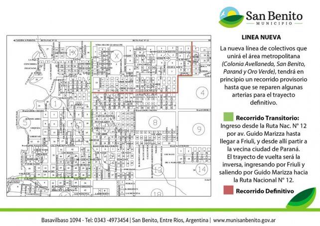 La Municipalidad de San Benito dio a conocer una serie de cambios en los recorridos de los colectivos urbanos dentro de la localidad. Además se anunció que ingresará la línea 20 y la nueva línea que unirá las ciudades del Gran Paraná.